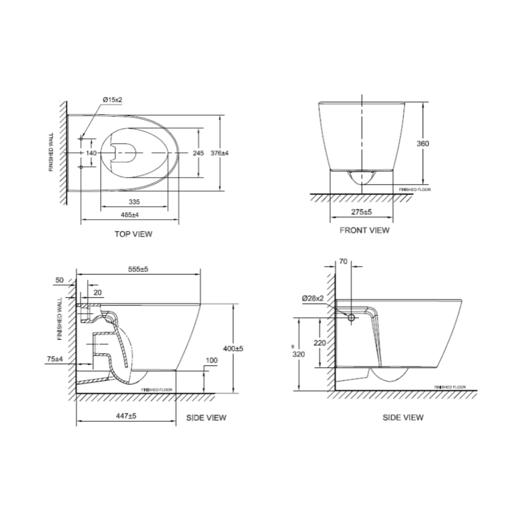 Acacia SupaSleek Wall Hung Toilet Key Specifications (CL31197-6DACTPTN1)