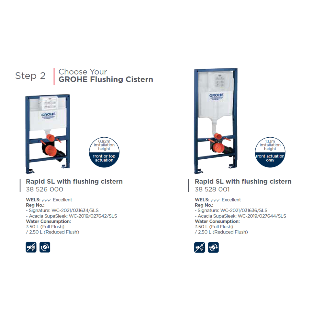 2. Rapid SL with flushing cistern 0.82m/1.13m installation height for front or top actuation (38526000/38528001)