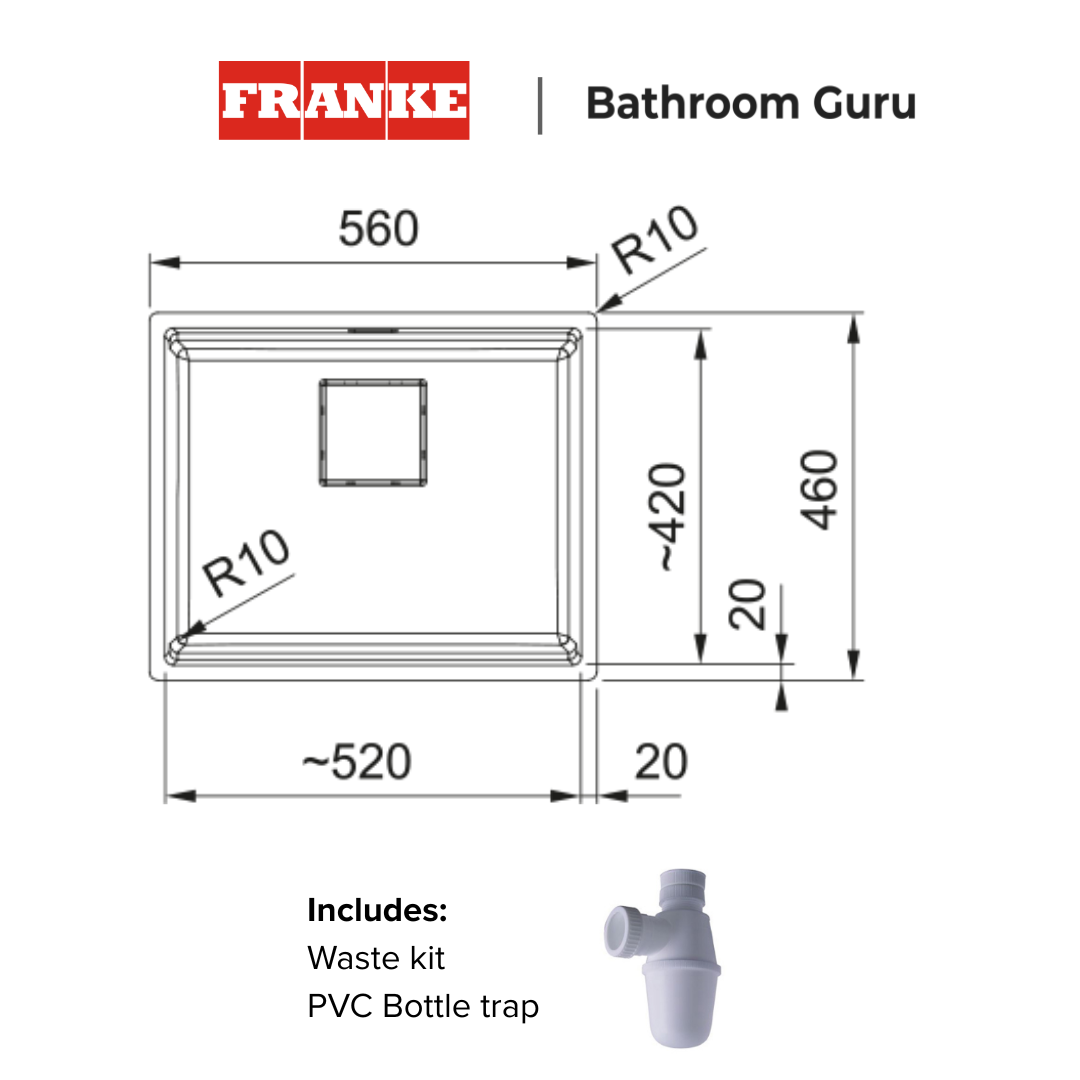 Hidden Overflow & Stylish Waste Cover: Equipped with a concealed overflow, along with a Franke-engraved square stainless steel waste cover for an elegant finish.