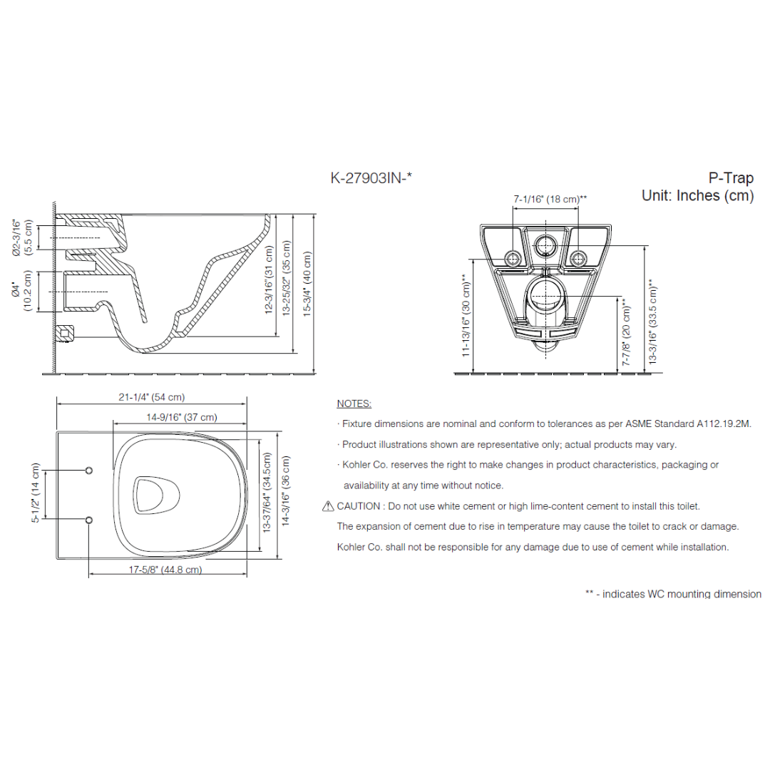 WC model in illustration below: 5723K Kohler VEIL Wall Hung WC