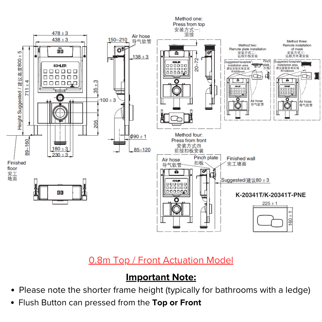 x1 Ultra Thin Hydro-Tower 110 Pneumatic In-wall Tank Concealed Cistern with Frame Choose one: between 800mm or 1150mm height