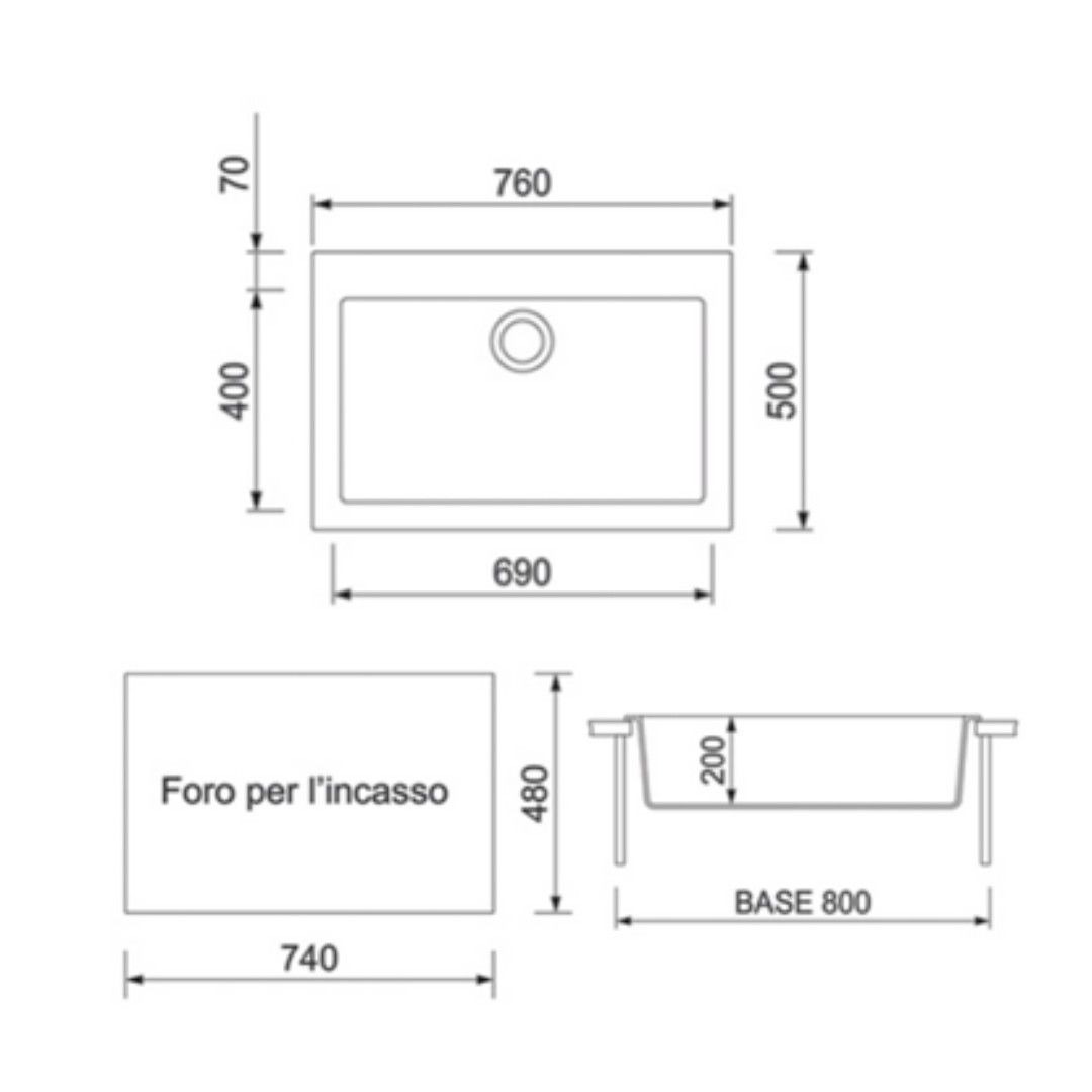 - Bowl dimension: L690xW400xH200mm